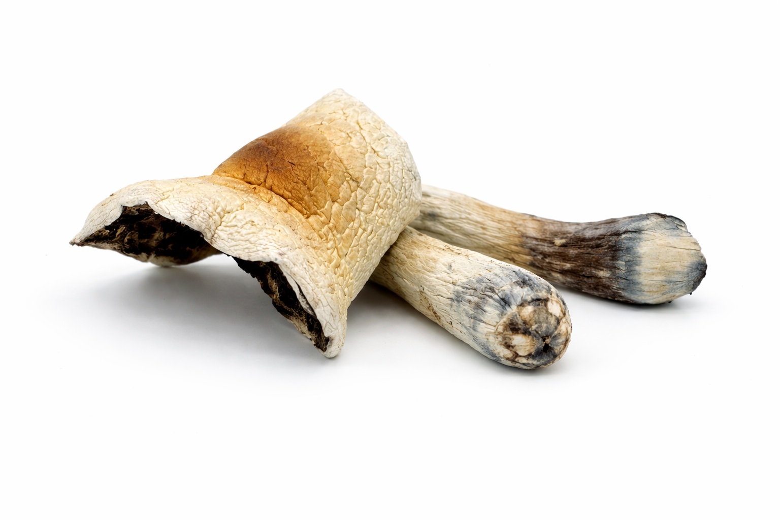The blue bruising that appears when the mushroom is touched is a natural reaction caused by the oxidation of psilocybin compounds.